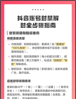 4、解封后的注意事项账号成功解封后,一定要吸取教训,仔细阅读,抖音社区自律公约,然后,避免再次触碰,那些明确的红线,比如,不发布敏感内容,不进行恶意营销,同时,注意账号行为,不要短时间内,进行大量操作,例如,频繁点赞评论,或者,突然大量关注,另外,保持设备纯净,不要安装,任何作弊插件,只有这样,账号才能,长久安全地使用。