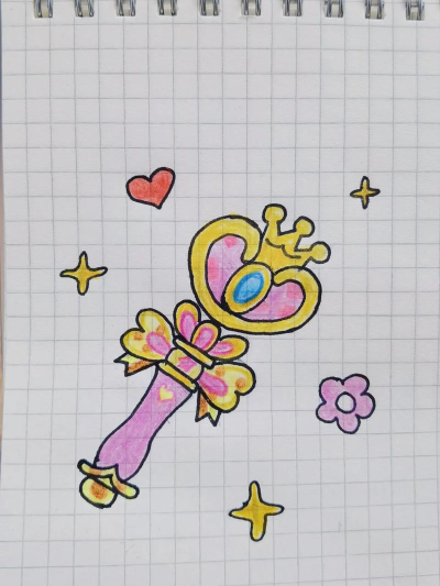 3、细化结构与添加装饰轮廓画好后,我们开始细化,在杖身上,可以添加一些纹路,比如螺旋花纹,或者简单的线条,让魔法棒,看起来更精致,在顶端部分,可以画上星星,月亮,或者心形等图案,作为核心装饰,周围,还可以添加一些小光点,或者飘逸的线条,来表现魔法的光芒,记住,细节决定成败。