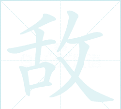 现在,我们把两部分,组合起来看,“敌”是左右结构,书写时,先写左边的“舌”,再写右边的“攵”,两部分要写得,紧凑一些,但不要粘连,整体字形,应保持方正、平稳。