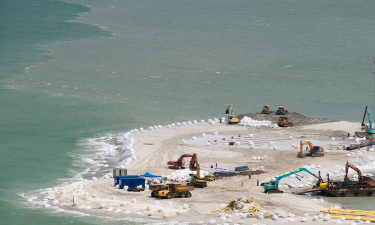 2、围堰与排水,创造干燥的施工环境大海是流动的,你没法直接往里倒材料,所以,填海的第一步,通常是修筑围堰,围堰,就像一道临时的堤坝,它把计划填海的海域,与外面的海洋隔开,然后,你需要把围堰内的海水抽干,形成一个“干地”施工区域,这样,大型机械才能进场作业,围堰的材料有很多种,比如,抛石围堰,就是用大块石头堆砌,还有,钢板桩围堰,它更坚固,适用于深水区,排水完成后,海底就露出来了,这时,你看到的可能是一片淤泥,所以,常常需要先进行地基处理,比如,打设排水板,加速淤泥固结,或者,换填更好的土料,为后续填筑打好基础。