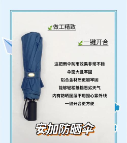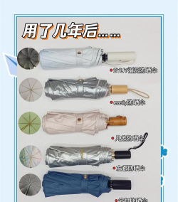 防晒伞,看标签,UPF值,要大于40,UVA透过率,小于5%,伞面内层,有黑胶,涂层更佳,隔热好,晴雨伞,虽方便,但防晒效果,会打折,长期暴晒,伤涂层,建议分开,使用好,儿童伞,要小巧,重量要轻,图案可爱,安全设计,很重要,伞头要圆,防戳伤,反光条带,更安全。