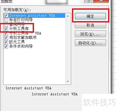 打开Excel,点击左上角Office按钮,选择Excel选项,进入加载项,点击转到,勾选分析工具库即可。