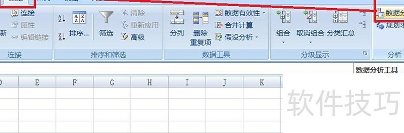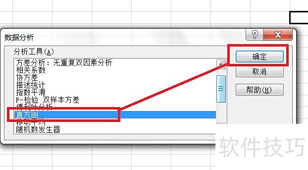 在Excel中选择数据选项卡,点击数据分析,选取直方图功能。