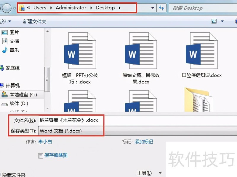 5.4. 同时按下Ctrl+S键,弹出另存为窗口,将保存位置设为桌面,文件名维持默认,保存类型保持默认的Word文档(*.docx),最后点击保存按钮完成操作。