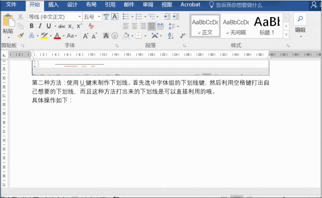 先选中字体组的U键,再用空格键输入所需下划线,此方法生成的下划线可直接在其上方添加文字。