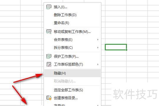 打开Excel,将鼠标移至工作表标签,右键点击,在弹出菜单中选择隐藏即可。