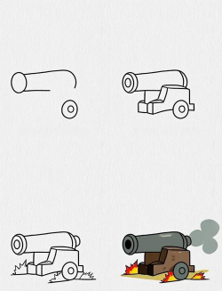 画大炮的关键是抓住外形,然后逐步细化,多练习几次,你就能画得又快又好,无论是卡通风格,还是写实风格,都可以尝试,享受绘画的乐趣吧。