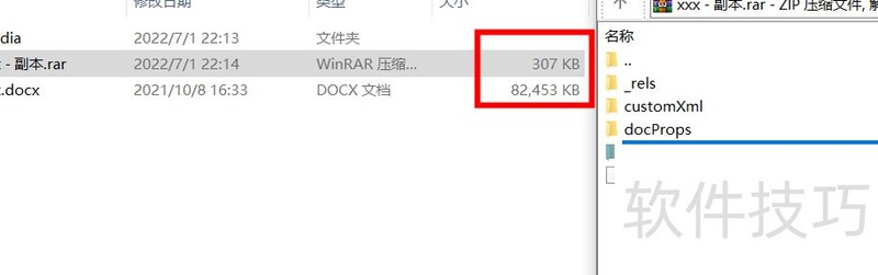 经程序验证,docx为压缩流,将.docx重命名为.rar即可查看其内容。