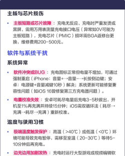 3、电池与硬件故障排除了以上原因,问题可能更深,比如,电池本身老化严重,已经无法蓄电,这种情况在旧手机上很常见,或者,手机主板上的充电模块坏了,这属于硬件故障,自己通常无法修理,需要专业检测,如果手机近期摔过或进过水,那么,硬件损坏的可能性就更大了。