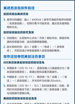 关闭语音信箱后,有些情况,需要注意,比如,当你关机时,来电会直接提示,无法接通,而不是转入信箱,这可能会让,紧急联系人着急,所以,提前告诉他们,你的新状态,另外,有些商务人士,可能需要信箱,来接收重要留言,关闭前,请权衡利弊。