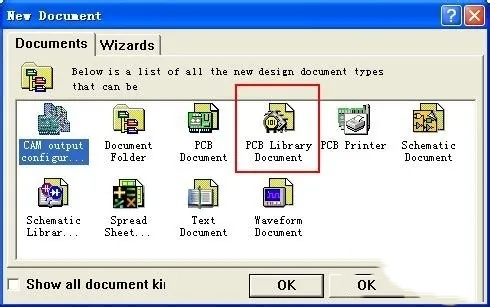 在文件夹的空白区域右键点击。在弹出的对话框中选择“PCBLibrarydocument”。双击进入*.LIB文件,开始绘制封装。