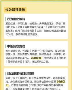 1、了解信誉分规则,避免再次违规要明白扣分原因,系统不会无故扣分,通常是因为违规,比如挂机,比如送人头,比如言语辱骂,这些行为,都会被系统检测到,然后扣分,所以,恢复信誉分的第一步,就是了解规则,避免再犯,游戏内有信誉系统说明,可以仔细看看,知道哪些能做,哪些不能做,这是基础。