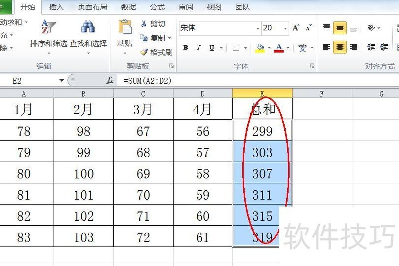 如何用AutoSum快速求和数字