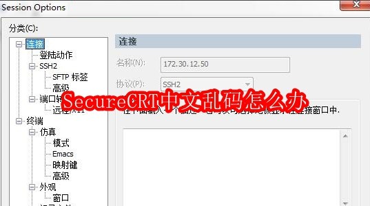 SecureCRT中文乱码怎么办首先,在电脑上打开SecureCRT,选择“选项(O)”->"会话选项(S)...",进入会话选项的对话框进行配置