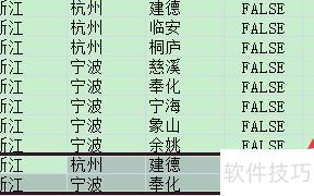 D列为TRUE的记录已移至表格末尾,选中后删除即可完成操作。