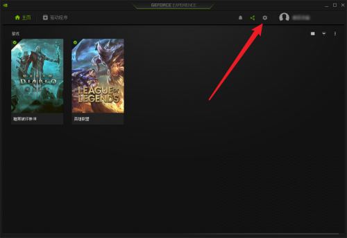 第二步:进入GeForceExperience主界面,点击“齿轮图标”(如下图)。