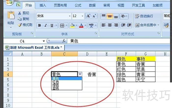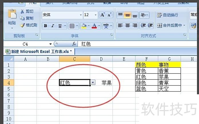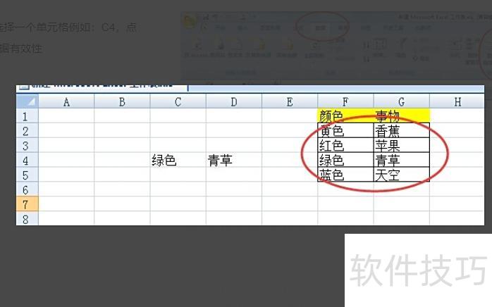在F列填写颜色,G列填写对应事物,确保左右一一对应。