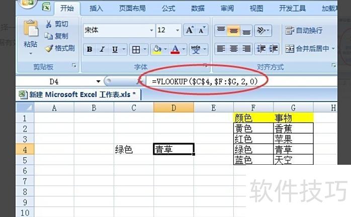 在目标单元格(如D4)输入公式:=VLOOKUP($C$4,$F:$G,2,0),然后按下回车键即可完成操作。