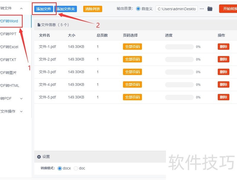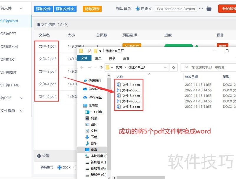 第四,所示为转换前后五个文件的格式对比,可见软件已自动将五个PDF文件成功转为Word文档,表明该方法效果显著且操作简便,具备较高的实用性和可靠性。