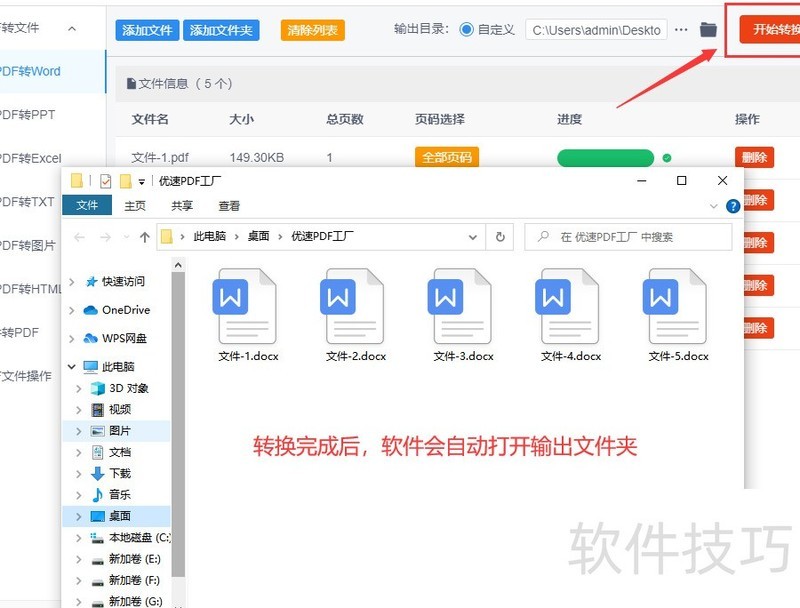 第三步,设置完毕后点击按钮,软件将迅速把上传的PDF文件转为Word文档,转换完成后自动弹出输出文件夹,方便用户及时查看生成的Word文件。