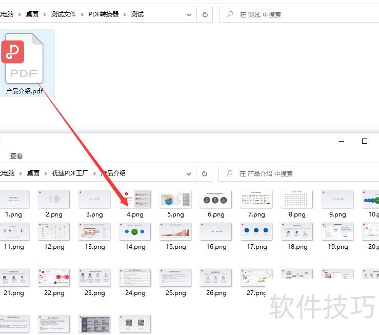 第五,案例结果显示,该软件成功将PDF文件的每一页转换为PNG图片格式。