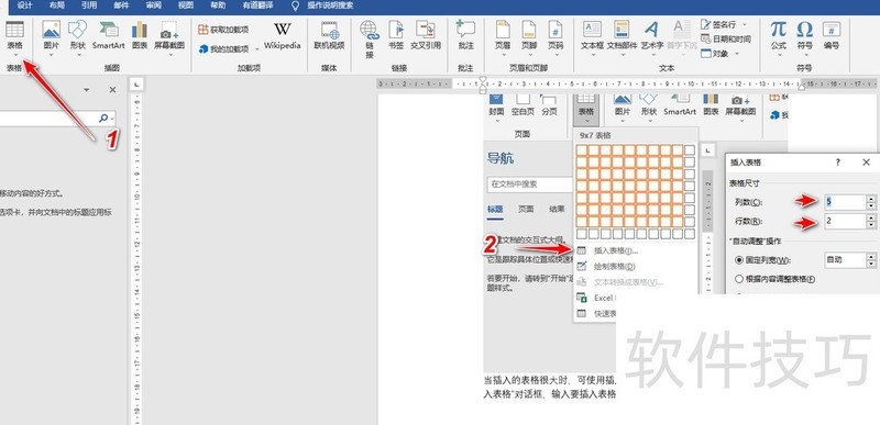 5. 点击插入表格,在弹出的对话框中输入行列数,确认即可完成插入。