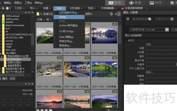 在ACDSee Pro 8中打开需制作PDF的图片,选择创建→PDF菜单命令即可(见图1)。