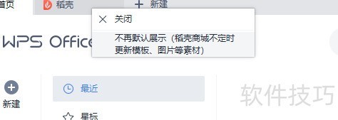 每次打开WPS都会显示稻壳会员,只需右键点击稻壳选项卡,选择不再默认展示即可关闭。
