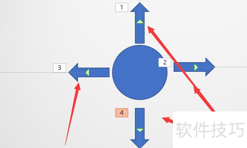按相同方法设置其余三个箭头,并依各自方向调整前进方向。