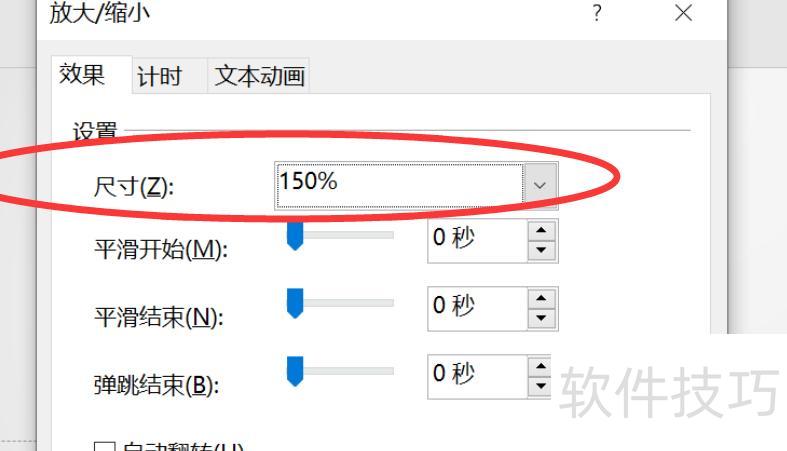设置完毕后,点击效果选项中的尺寸,调整为150%即可。