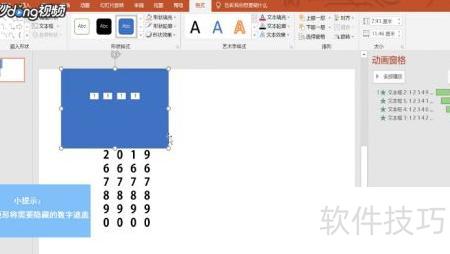 用白色填充的矩形覆盖需隐藏的数字,边框也设为白色,完成后播放动画查看效果。