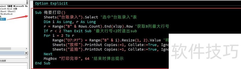 打印监抽工作表,打印份数为1份,启用逐份整理功能,并遵循工作表中设定的打印区域进行输出。