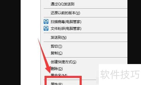 此时,再次右键点击文件,选择属性选项。