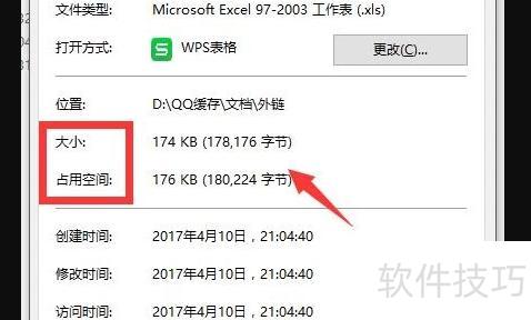 找到较大的Excel文件,右键点击,选择属性选项查看详细信息。