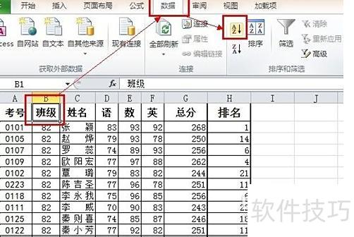 选中目标列,点击数据菜单,执行升序排序操作。