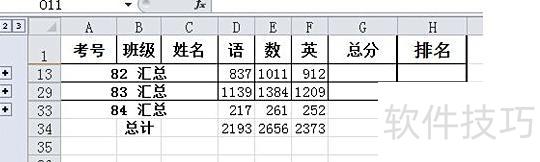 5. 查看示例:选择2后显示按语数英分类的各班总成绩汇总情况。