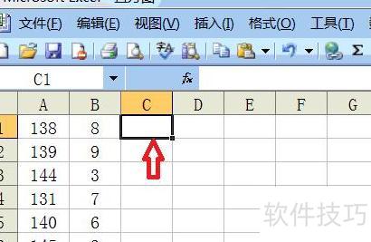 用鼠标左键单击C列第一行,位置所示