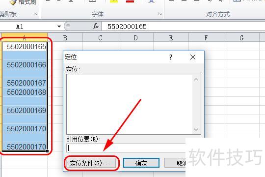 选中A1至A12单元格,按F5键,在弹出的定位窗口中点击定位条件。