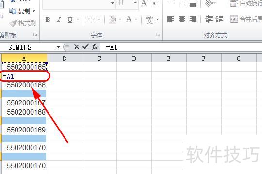 返回主界面可见空格已全选,在A2单元格输入=A1即可。