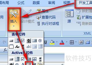 在功能区选择开发工具选项卡,点击插入中的图像控件。