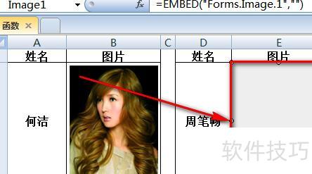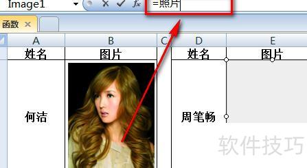 选中图像控件,将编辑栏公式修改为:=照片。