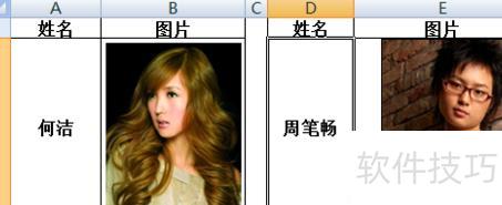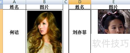 在Excel中,A列为图片名称,B列存放对应照片。于D2输入或选择名称后,E2将自动显示对应的图片内容。