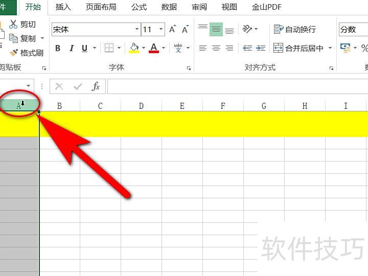 将鼠标移至目标单元格首行,点击左键选中,待鼠标变为实心右向箭头即可。