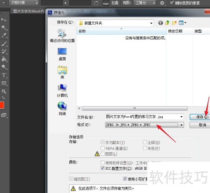 按Ctrl+S保存,弹出存储为对话框,选择JPEG等图片格式,点击保存即可。