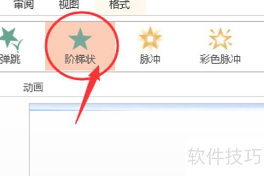 将鼠标移至已编辑的文本,点击菜单栏动画,从弹出的动画效果中选择喜爱的阶梯动画即可。