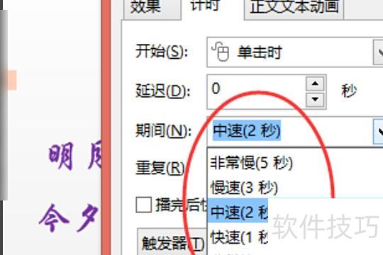 点击时间后选择期间,可看到慢速、中速和快速三种速度选项,根据个人需求自行设定即可。
