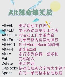 在使用Excel进行数据处理时,工作表是基本的操作单元。熟练掌握与工作表相关的快捷键,能够显著提升工作效率。以下是一些常见的操作及其对应的快捷方式: