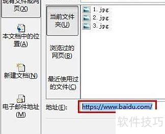 在左侧选择现有文件或网页,于地址栏输入目标页面后,点击确定即可。