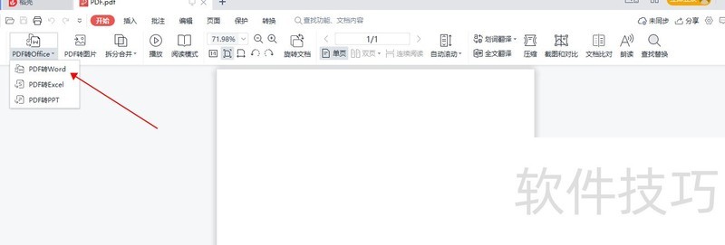打开PDF文件,在首页左上角点击转换选项的小三角,选择PDF转Word即可完成转换操作。