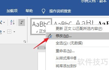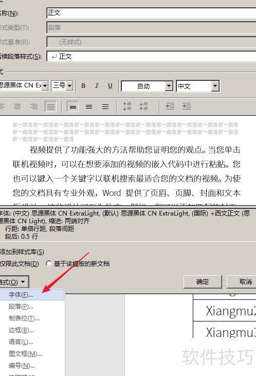 如何设置英文和数字使用非中文字体?可右键修改正文样式进行调整。